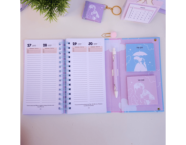 Miolo de agenda 2 dias por página (2DDP) com frases de Doramas - DATADO 2025 E PERMANENTE COM CALENDARIOS DE 2025/2026