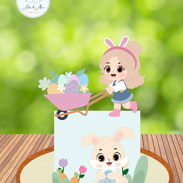 - Arquivo Topo de Bolo Pascoa Menina com Carro de Mão